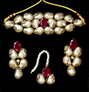 Choker Set (Turkish Imitate Pearl & Ruby-Tone) | Festive Jewellery