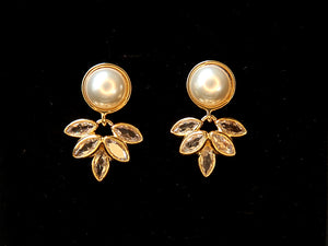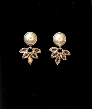 Elevate your accessory game with these stunning golden drop earrings. Featuring a luminous faux pearl stud and a delicate fan of marquise-cut crystals, these earrings mimic the graceful silhouette of a falling leaf.